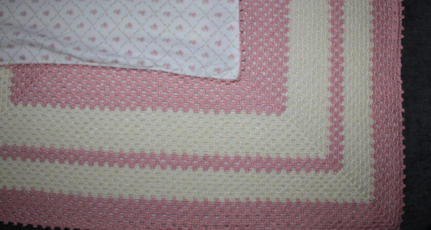 Check out these gorgeous photos of this pink and yellow granny square crochet baby blanket