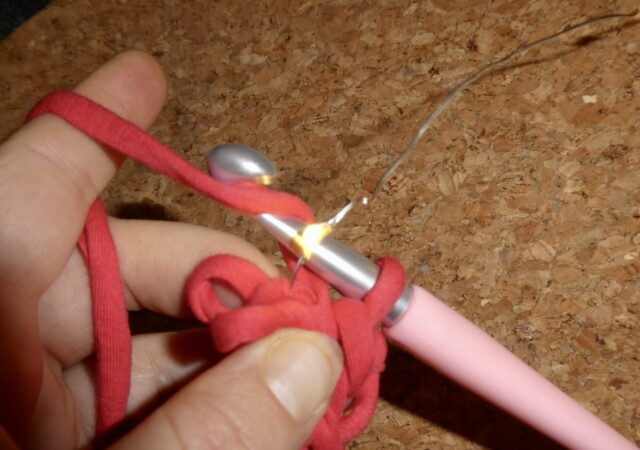 Initially, I wanted to make the iCord around the lights and wire at the same time, but it was too fiddly. Hence why we’ll have to do this bit after.