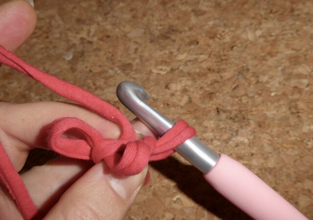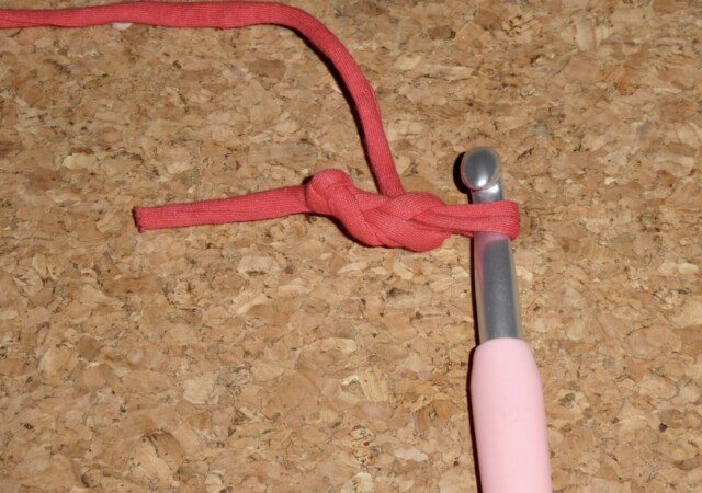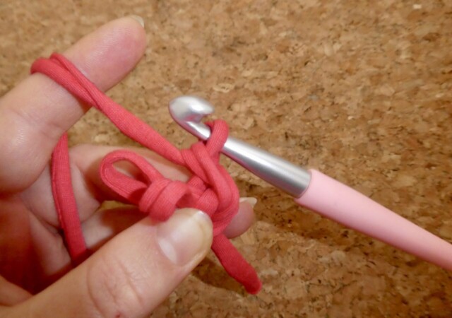 Now, drop 2 of the chains from your hook so that only 1 remains. Be sure to pinch underneath the chains you dropped so they don’t become lost.