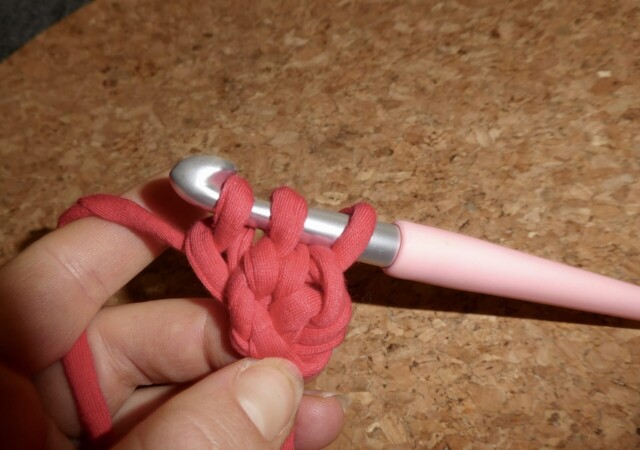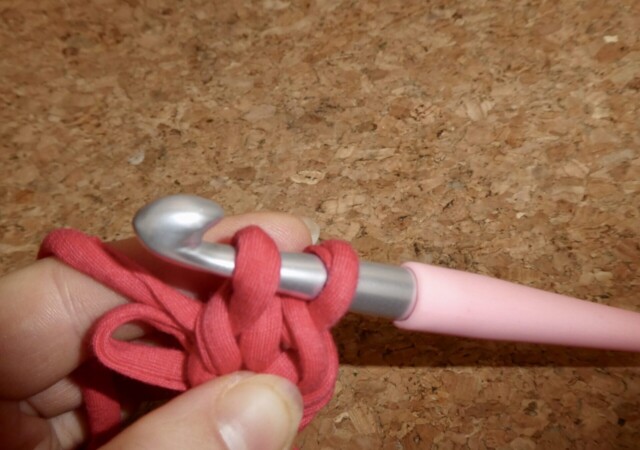 Reapeat this on the next loop of yarn which is in the middle (while still pinching the remaining loop that is unhooked).